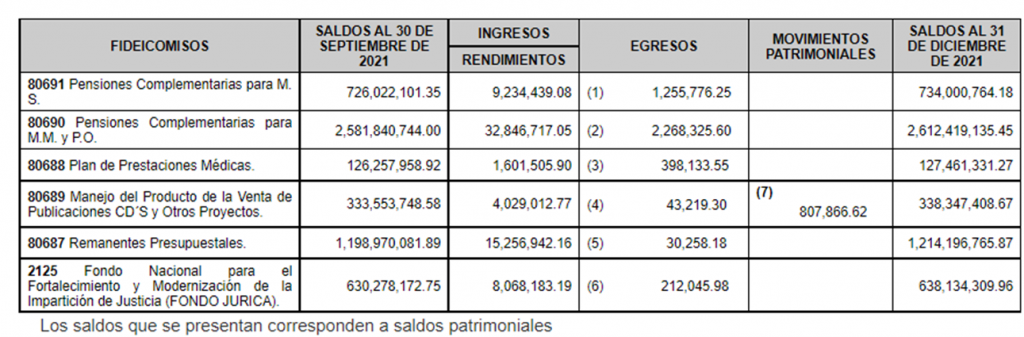 SALDOS DE LOS FIDEICOMISOS EN LOS QUE LA SUPREMA CORTE DE JUSTICIA DE LA NACIÓN
